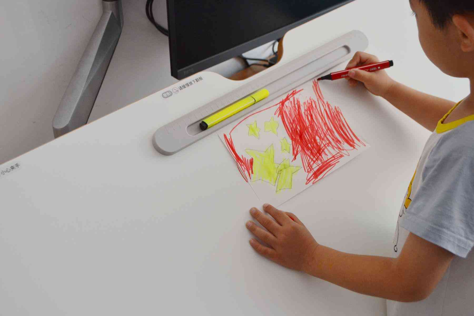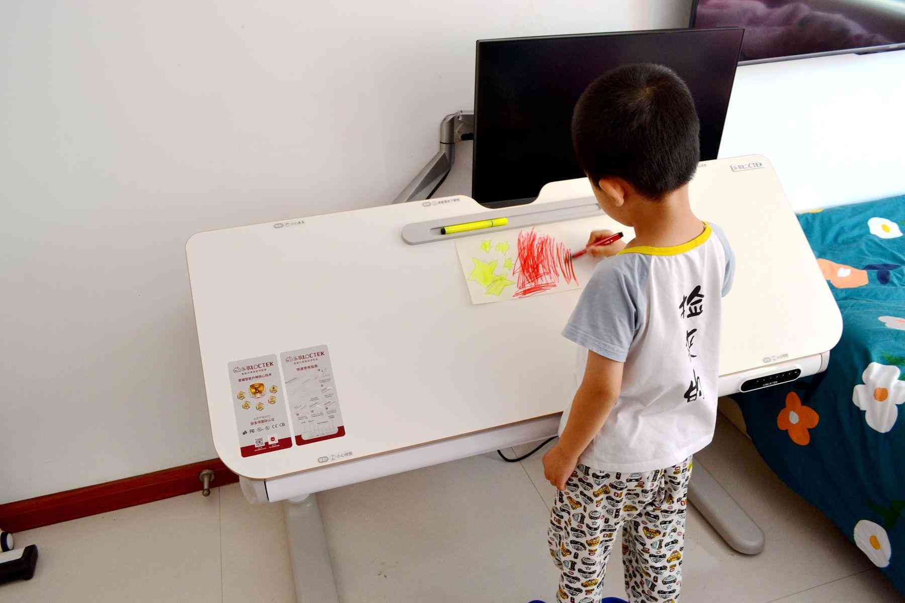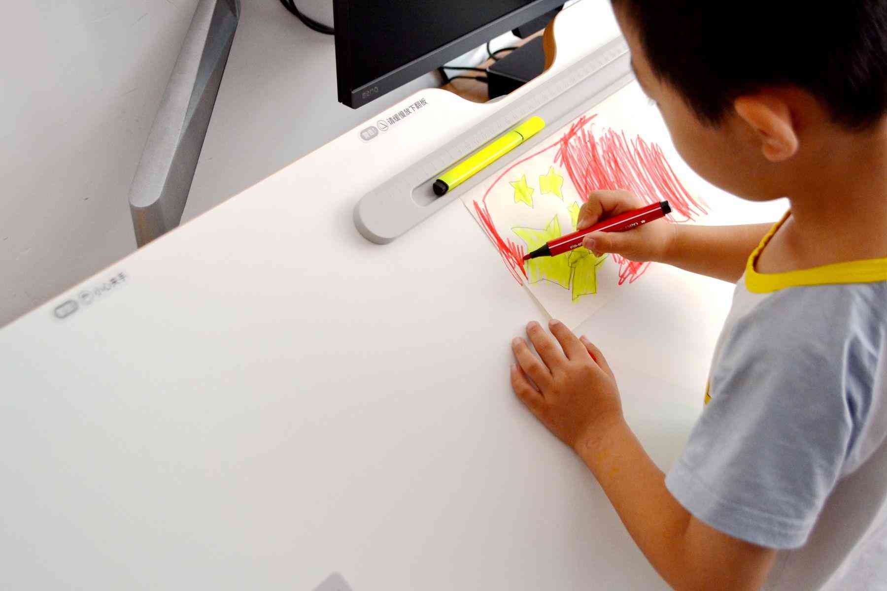 樂歌EC7這款智能升降書桌,作為書桌用,孩子可以站著,調(diào)節(jié)到舒服的高度,把桌板立起來,調(diào)節(jié)成45°角,再用樂歌的磁吸擋板固定好畫紙,這樣就可以非常舒服的站著畫畫寫生了。放學回家,坐在電腦桌前,調(diào)節(jié)好舒適的高度,寫作業(yè)。超大的桌面,完全可以給家長留下足夠的空間坐在旁邊指導孩子完成作業(yè)了。
