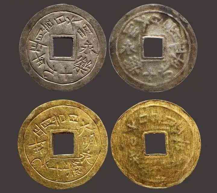 ▲明永樂十九年 金銀幣各一枚