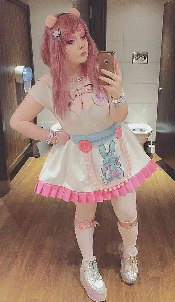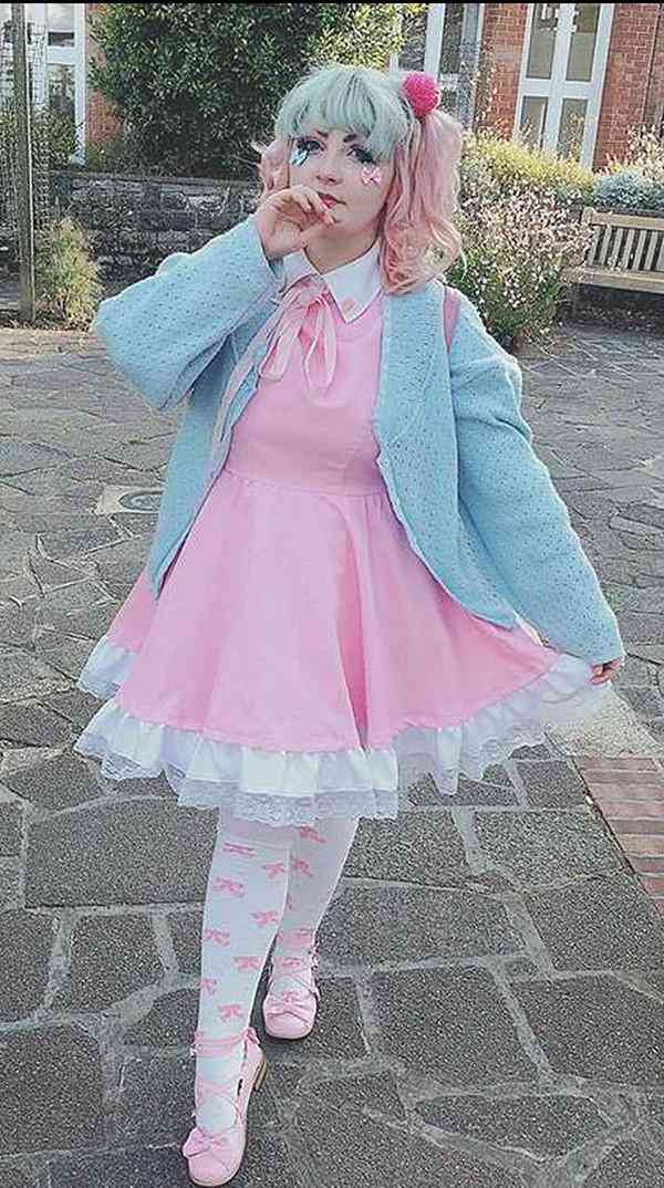 克麗絲塔每天早上都要花2個(gè)小時(shí)裝扮。她粉紅色的大衣柜里塞滿了各種風(fēng)格的服裝,從維多利亞風(fēng)格的絲絨連衣裙到日本動(dòng)漫造型的服裝、厚底鞋和閃亮亮的大皇冠,款式應(yīng)有盡有,透露出滿滿的少女感。她先用厚厚的粉底營(yíng)造出瓷感,再用眼影、白色眼線筆、三副假睫毛以及美瞳放大雙眼。穿上服裝后的她還會(huì)用小精靈耳飾等小配件增加整體造型的可愛感。她把自己描述為“來自太空的可愛魔獸娃娃”,并稱從化妝過程中找回了自信。