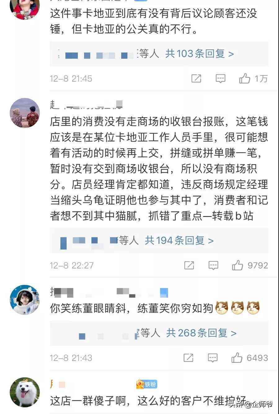 這卡地亞多學(xué)學(xué)網(wǎng)友的態(tài)度吧,卡地亞品牌公關(guān)肯定是不到位的,像是沒有關(guān)注這事兒,事情發(fā)生在5日,9日爆上熱搜,門店服務(wù)態(tài)度傲慢,事情發(fā)酵后也沒有聲明。