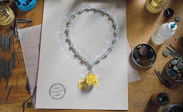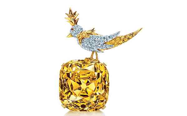 1878年,Charles Lewis Tiffany買下了蒂芙尼黃鉆,這是世界上最大以及最優(yōu)質(zhì)的黃鉆之一。后來經(jīng)寶石專家George Frederick Kunz監(jiān)督切割成128.54克拉,最終呈現(xiàn)了擁有82個精確切面的枕形寶石,折射任意角度的光線,讓這枚黃鉆徹底釋放了她如火焰般濃熾的光芒。完美傳達了蒂芙尼一直秉承的原則——不為重量,只為璀璨,從此成為矚目焦點,被命名為Tiffany Diamond。