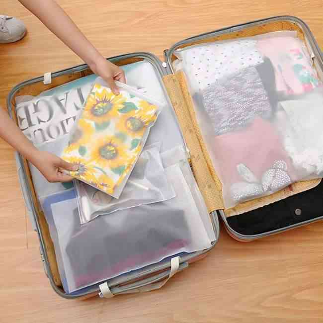 [機(jī)智]行李箱(根據(jù)出差天數(shù),要帶的衣物決定用不用),準(zhǔn)備收納袋對(duì)衣物用品進(jìn)行分類放置,看著井井有條,突然打開拿東西也不會(huì)尷尬。