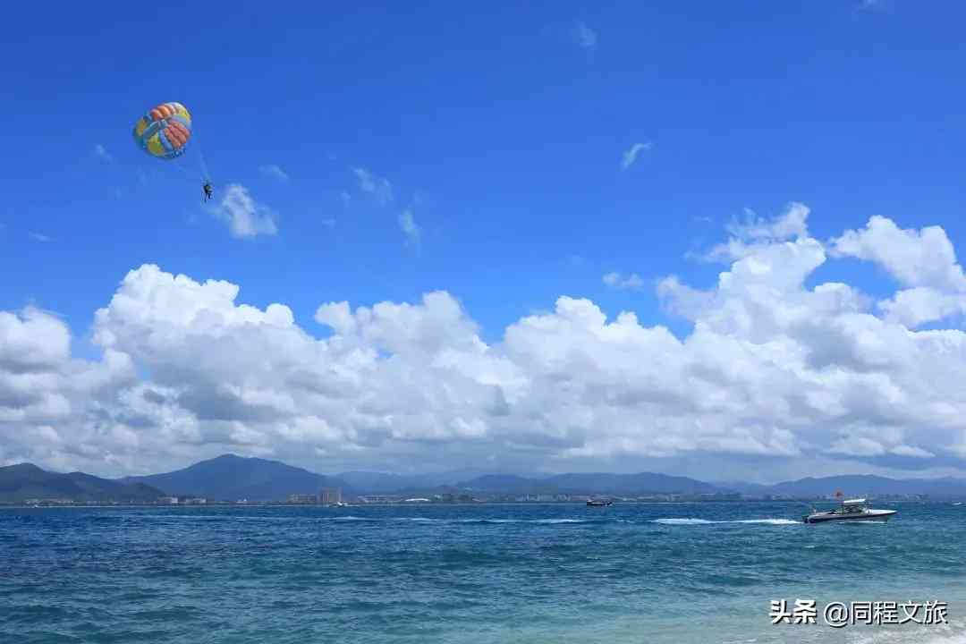 三面環(huán)山一面大海的大東海,一排排翠綠椰林環(huán)抱沙灘,藍天、碧海、青山、綠椰、白沙灘,獨特之美博得海內(nèi)外游客的贊嘆。