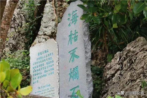 前往山頂?shù)穆飞蠒匆娚缴嫌胁簧倏淌?,去過的情侶一定知道有一種石是??莶粻€石,石刻內(nèi)容中寫道:鹿回頭山上這種黑色石頭原本為海底沉積巖,質(zhì)地極為堅硬,經(jīng)過滄海桑田的地質(zhì)變遷逐漸抬升到海面以上,人們稱其為“??莶粻€石”,成為此山一景,而??莶粻€石也正代表著堅不可摧的愛情。山頂可以望見美麗的半山半島海灣,遠處港頭的巨型碼頭,蔚藍的海面上帆船、游艇在馳騁,與心愛的她飽覽三亞的美景,同時眼前這個靜靜陪著自己的人如同一見鐘情般讓人怦然心動。