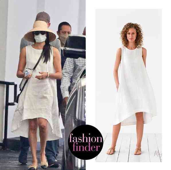 前兩天的梅根與哈里一起同游,手戴大金表的她,也是一款同風格的Magic Linen奶油色度假風亞麻裙裝,配香奈兒平底鞋一路在前,哈利緊跟其后,一身舊款灰色T略顯落魄像保鏢~