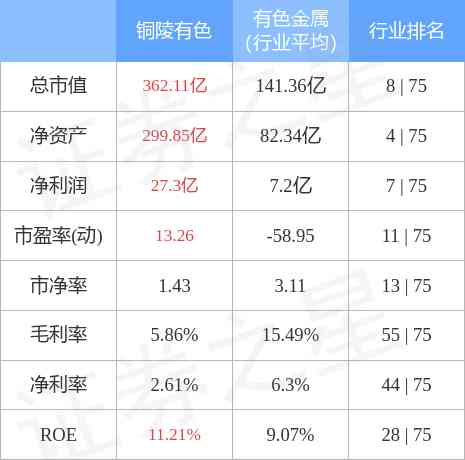 根據(jù)近五年財報數(shù)據(jù),證券之星估值分析工具顯示,銅陵有色(000630)行業(yè)內(nèi)競爭力的護(hù)城河優(yōu)秀,盈利能力一般,營收成長性較差。財務(wù)相對健康,須關(guān)注的財務(wù)指標(biāo)包括:有息資產(chǎn)負(fù)債率。該股好公司指標(biāo)3.5星,好價格指標(biāo)4星,綜合指標(biāo)3.5星。(指標(biāo)僅供參考,指標(biāo)范圍:0 ~ 5星,最高5星)