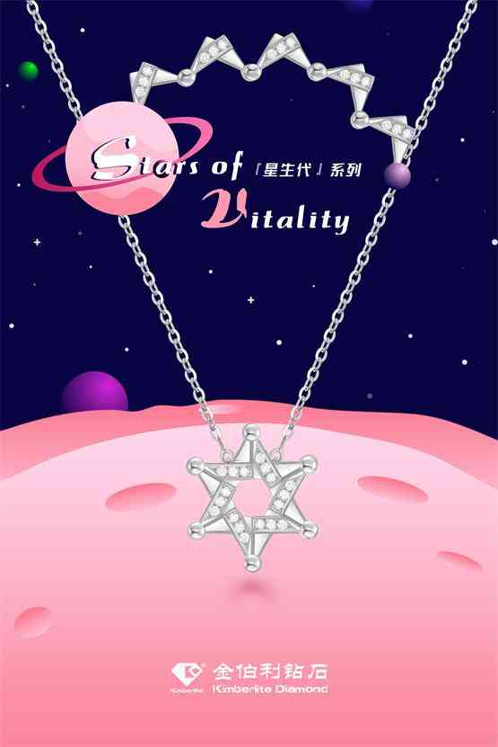 星星閃耀無比,鉆石代表著永恒,金伯利鉆石Stars of Vitality“星生代”系列吊墜的靈感源自鉆石和星光,該系列就像浩瀚星空中最亮的星,閃耀和指引著方向,激勵小仙女們迎接全新的自己。
