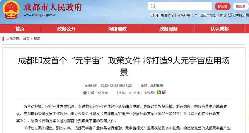 成都印發(fā)“元宇宙”政策文件