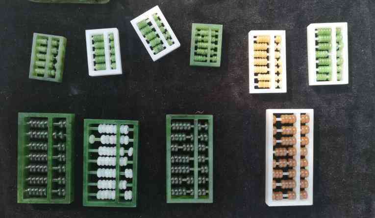 不同產(chǎn)地玉料組合成的小算盤掛件