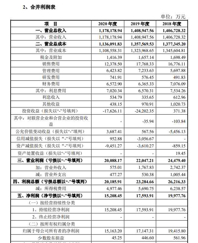招股書顯示,夢金園2018至2020年實(shí)現(xiàn)營業(yè)收入分別約140.67億元、140.89億元、117.82億元,對應(yīng)歸屬于母公司所有者的凈利潤分別約1.94億元、1.71億元、1.52億元。夢金園在報(bào)告期內(nèi)的營收規(guī)模增速放緩,凈利潤逐年下降。夢金園表示,2020年?duì)I收下滑主要系疫情影響。