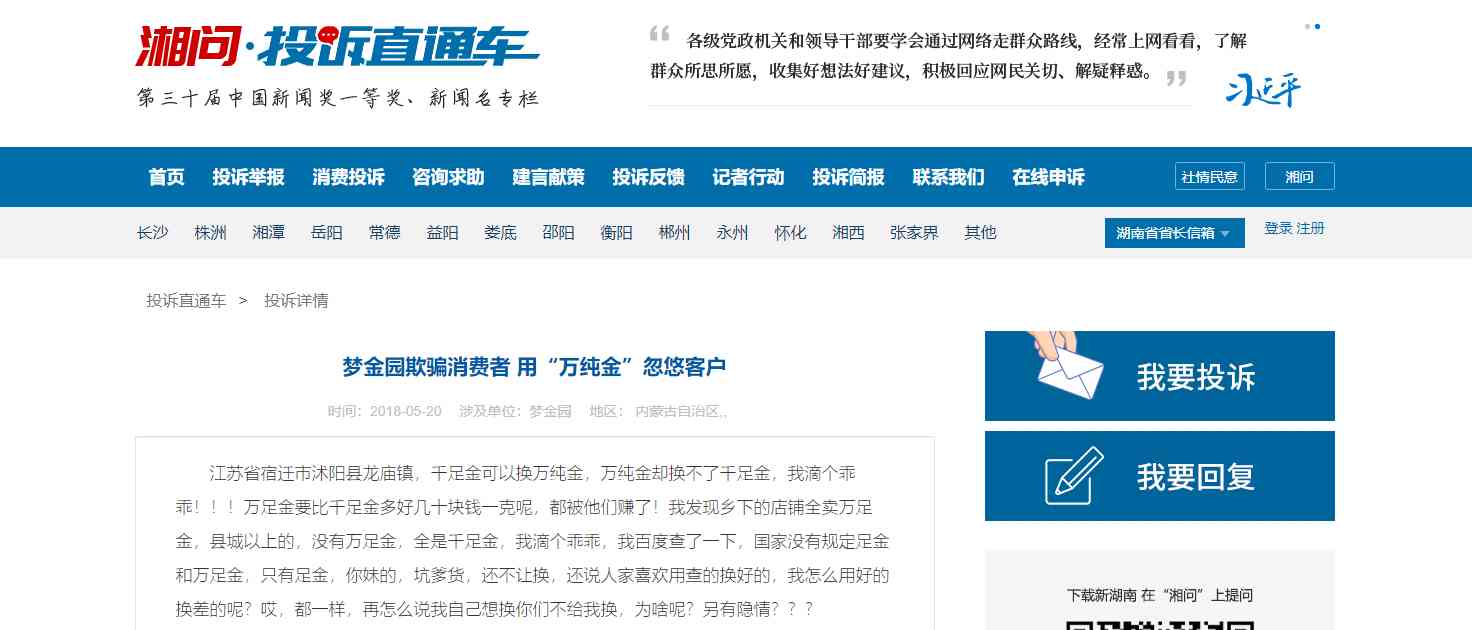 但紅星資本局發(fā)現(xiàn),此后依然有不少消費(fèi)者被千足、萬足金概念迷惑。在投訴平臺,有消費(fèi)者就夢金園“萬純系列”產(chǎn)品發(fā)出疑問,“千足金可以換萬純金,萬純金卻換不了千足金?!憋@然,有消費(fèi)者已將萬純系列與萬足金、千足金劃上了等號。