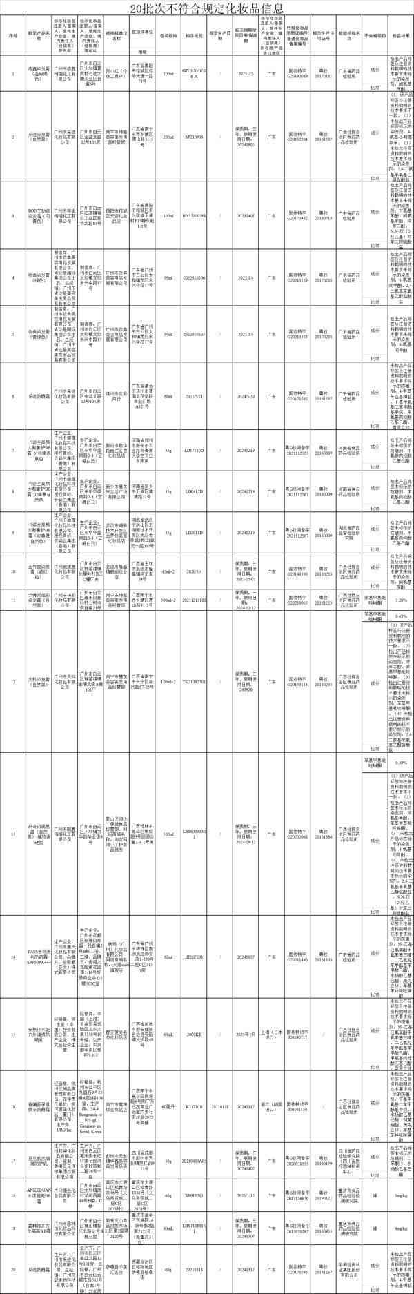 導(dǎo)讀: 國家藥監(jiān)局日前發(fā)布20批次不符合規(guī)定化妝品的通告看看有你用的嗎?在2022年國家化妝品監(jiān)督抽檢工作中,經(jīng)廣西壯族自治區(qū)食...