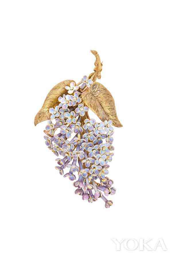 花卉造型珠寶在19世紀(jì)下半葉廣為流行,這要?dú)w功于蒂芙尼出版的書籍《花語(yǔ)》(Language of Flowers),書中編制了一系列花卉所代表的情感。這些設(shè)計(jì)以黃金和鉑金打造,象征著純潔、愛(ài)與美好。
