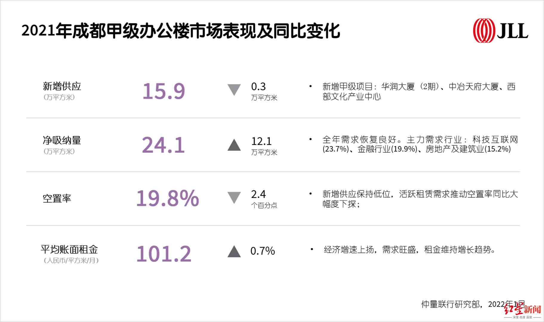 仲量聯(lián)行成都商業(yè)地產(chǎn)部總監(jiān)鄧艷萍告訴紅星新聞記者,2021年,成都生產(chǎn)生活基本恢復(fù)至疫情前水平,“因此,企業(yè)的辦公需求呈V型反彈,逐步釋放”。