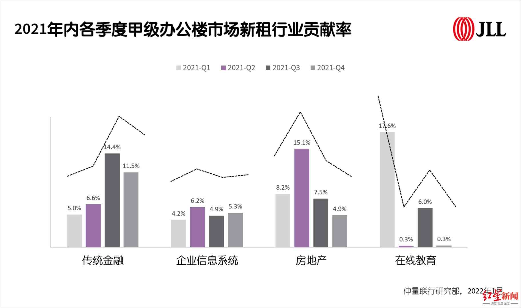 數(shù)據(jù)顯示,甲級辦公樓全年凈吸納量錄得24.1萬平方米,同比增長一倍,恢復(fù)到2019年疫情前水平。其中,科技互聯(lián)網(wǎng)行業(yè)成為關(guān)鍵詞,對新去化面積的貢獻(xiàn)率高達(dá)23.7%。