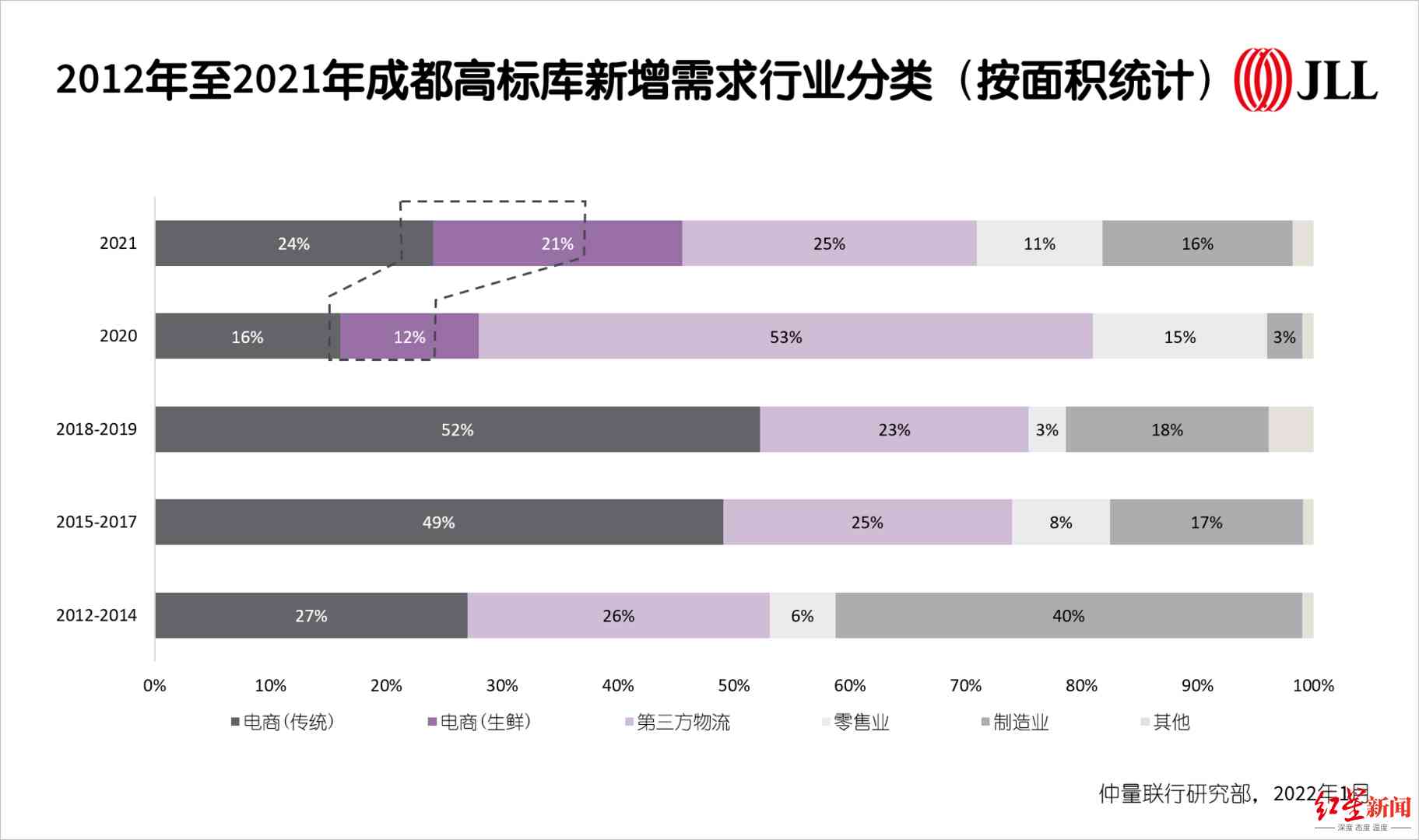 仲量聯(lián)行華西區(qū)產(chǎn)業(yè)與物流服務(wù)部總監(jiān)尤鵬偉告訴紅星新聞,高標(biāo)庫市場逐步打破一家獨大的租戶結(jié)構(gòu),需求穩(wěn)定性顯著提升。