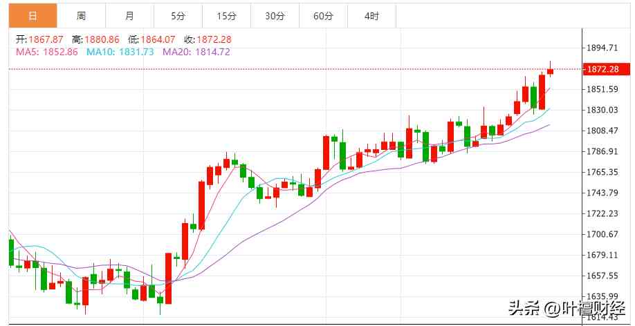 繼1月6日大漲創(chuàng)出階段新高之后,1月9日國際金價(jià)擴(kuò)大漲勢(shì),一度來到1880.86美元/盎司,創(chuàng)出近八個(gè)月的新高。
