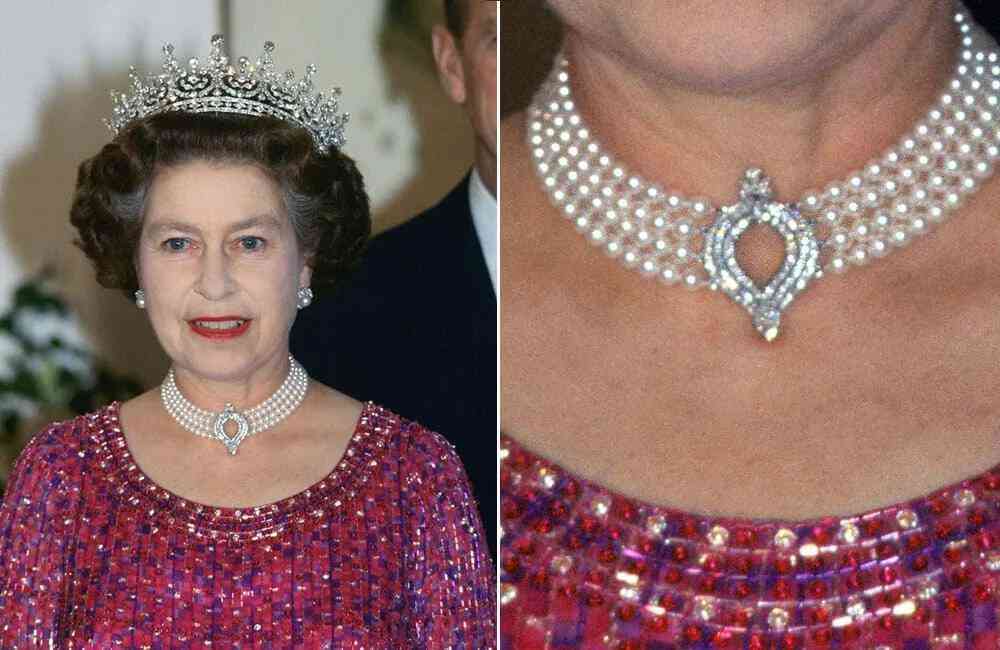 伊麗莎白二世女王偏愛珍珠,這也可能就是戴安娜愛珍珠的原因吧,女王在 1970 年代定制了這款四排珍珠項鏈,估計價值是 200,000 美元。