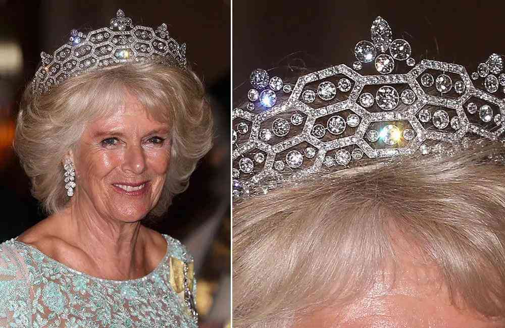 卡米拉喜歡佩戴自 1942 年以來皇室一直擁有的寶詩龍蜂窩頭飾,由于鑲嵌的鉆石和寶石比較多,估計價值 200 萬美元。