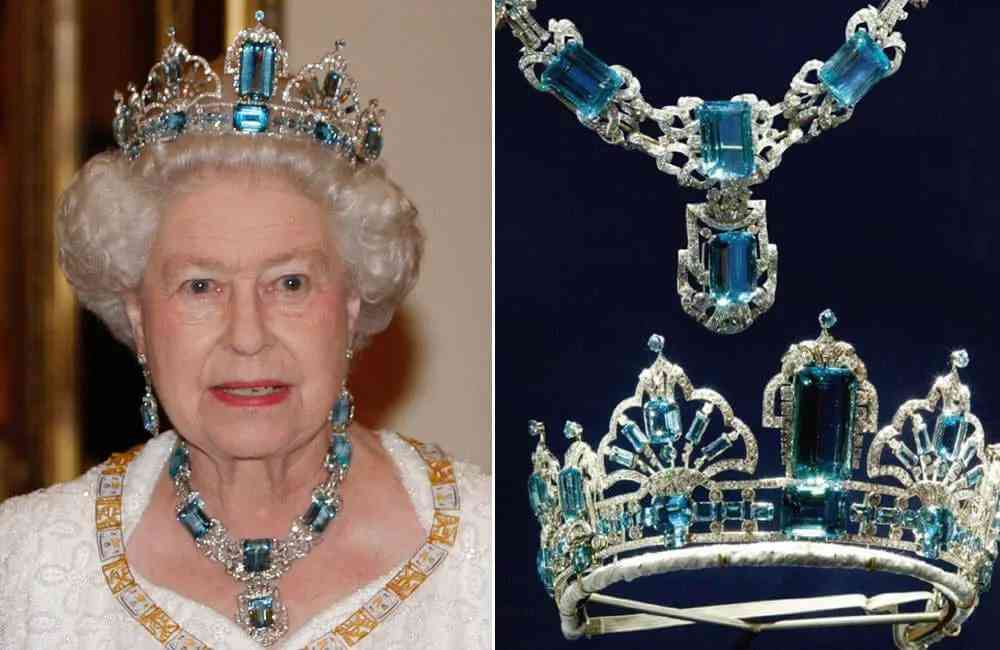 伊麗莎白二世女王更喜歡透明鉆石而不是彩色鉆石,但不能否認(rèn)巴西海藍(lán)寶石套裝太美麗了,它包括頭飾、項鏈和耳環(huán),于 1953 年送給她?,F(xiàn)在價值 100 萬美元!
