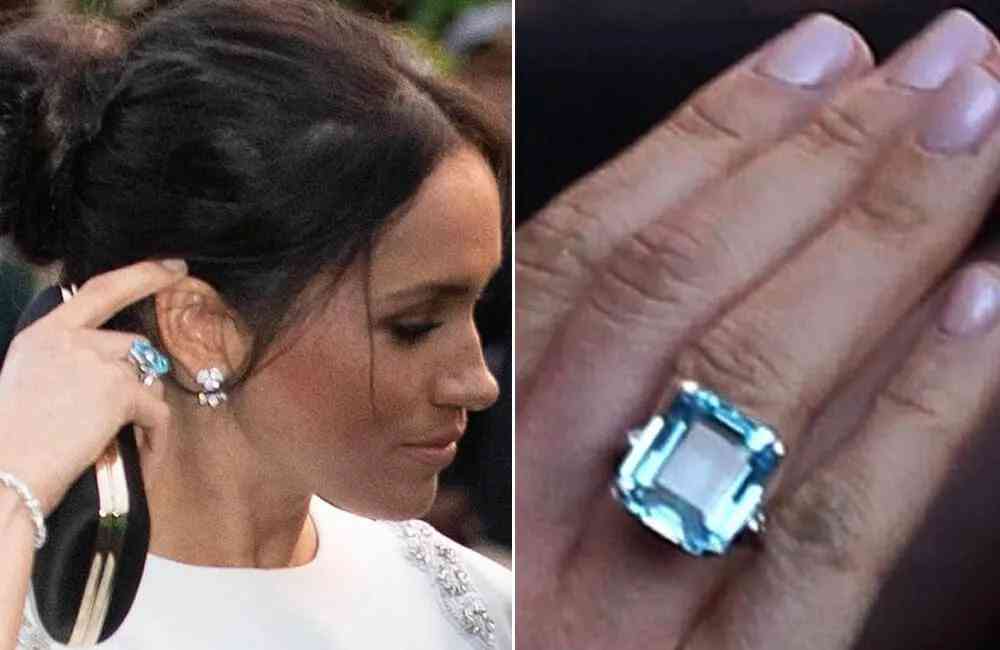 戴安娜王妃在 1990 年代與查爾斯王子分居時,她讓珠寶商制作了海藍(lán)寶石戒指,梅根在 2018 年的婚宴上戴著它,價值約 75,000 美元。