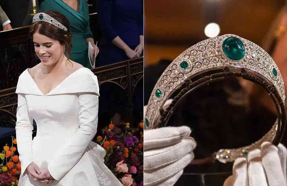 自 1919 年以來一直屬于王室,直到 2018 年才在婚禮當(dāng)天被贈送給尤金妮公主,它包含一顆 93.7 克拉的祖母綠寶石,估計價值 100萬美元。
