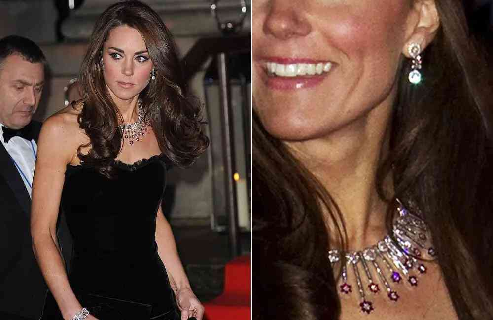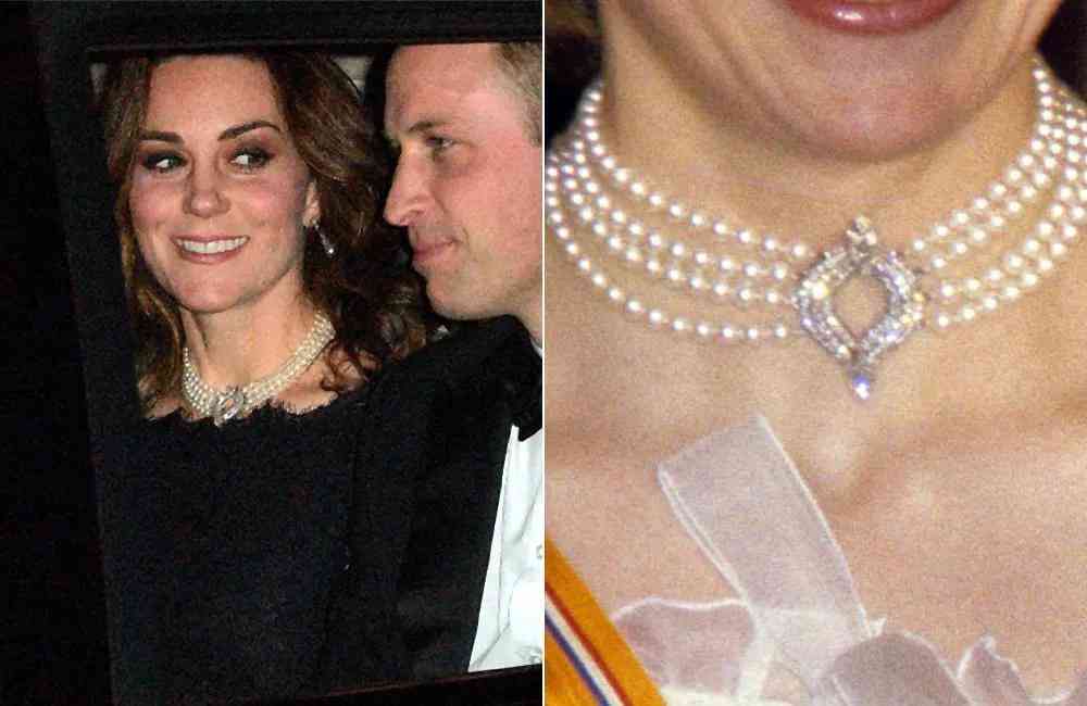 伊麗莎白二世女王在 1970 年代訪問日本后定制了四弦珍珠項圈,珍珠是日本政府送給她的,她把它借給了戴安娜王妃,并在戴安娜離婚時收回,現(xiàn)在借給了凱特,估計價值 325,000 美元。