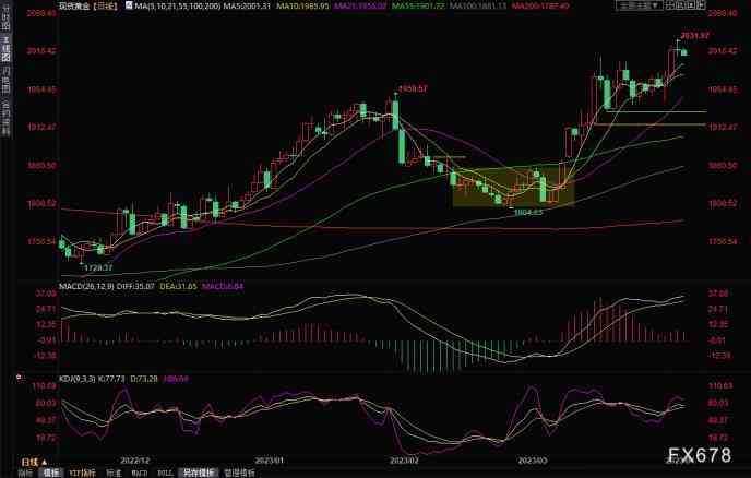 周四(4月6日)亞洲時(shí)段,現(xiàn)貨黃金小幅走弱,目前交投于2011.65美元/盎司附近,美聯(lián)儲(chǔ)官員重申將進(jìn)一步加息,非農(nóng)數(shù)據(jù)前部分美元空頭獲利了結(jié),美元指數(shù)反彈,令金價(jià)承壓,上一交易日K線錄得十字星。不過,3月美國民間就業(yè)崗位增長低于預(yù)期,美國服務(wù)業(yè)增長放緩,也加劇了對(duì)美聯(lián)儲(chǔ)快速加息帶來經(jīng)濟(jì)損失的擔(dān)憂,10年期美債收益率連續(xù)六個(gè)交易日收跌,調(diào)查顯示一年后美元指數(shù)將進(jìn)一步下跌。