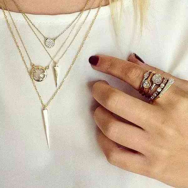 如果你真的難以選擇,想要把戒指通通帶上的話,可以選擇箭頭設(shè)計(jì)戒指,或者一些星星、月亮的設(shè)計(jì)元素,不過切記箭頭指向的戒指要確保方向性一致,顏色也盡量相同才不會過于混亂。