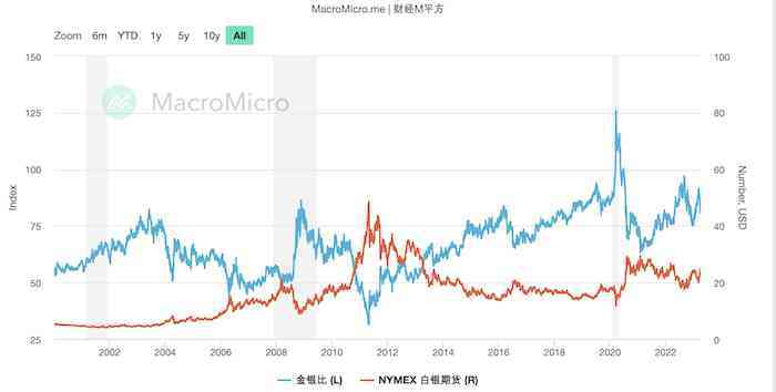 值得一提的是,白銀是3月表現(xiàn)最佳資產(chǎn),以15%的當(dāng)月收益笑傲群雄。白銀價(jià)格走勢(shì)同時(shí)由貨幣、工業(yè)屬性引導(dǎo)。經(jīng)濟(jì)衰退期間,貴金屬進(jìn)入多頭行情初期,多數(shù)央行均采取貨幣政策寬松,使黃金漲勢(shì)較為強(qiáng)勢(shì)(金銀比上升),凸顯貨幣屬性,白銀雖也上漲,但一定程度被工業(yè)屬性拖累。如:2008年、2020年3月。不過,多位投資人士對(duì)記者表示,近期白銀的跑贏更多是因?yàn)榇饲皻W美銀行業(yè)危機(jī)期間超跌,如今是金銀比(黃金/白銀期貨價(jià)格)均值回歸。但中長(zhǎng)期而言,黃金的表現(xiàn)或更優(yōu)。