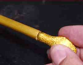 運(yùn)用在黃金上,就是采用純手工的方法對(duì)黃金進(jìn)行精雕細(xì)琢。