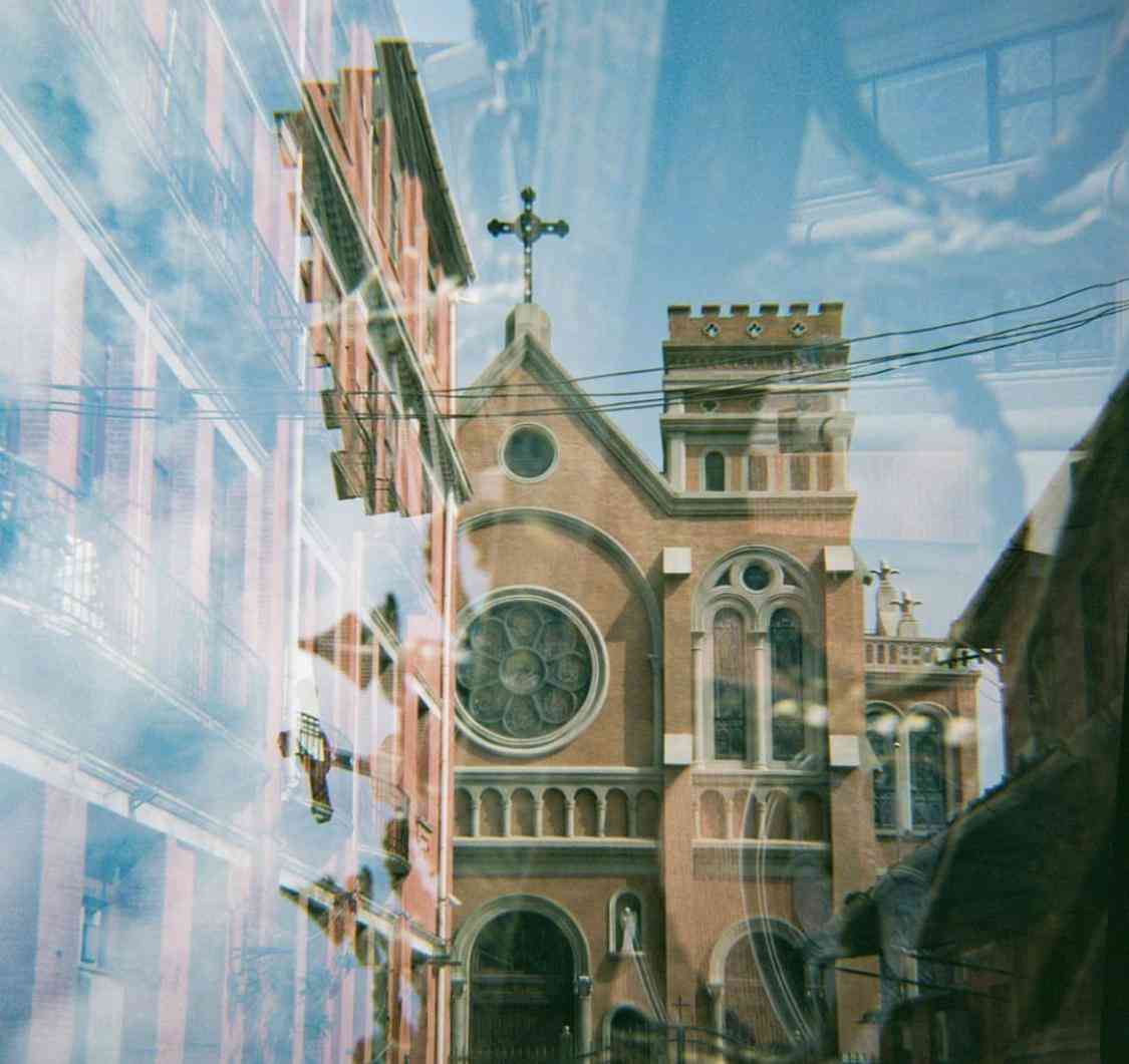 在雙重曝光作品中,上海新城與舊城呈現(xiàn)出夢(mèng)幻的對(duì)比。