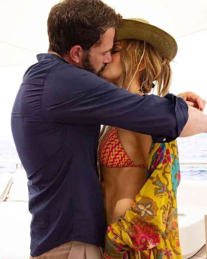 詹妮弗52歲生日當(dāng)天,在ins上發(fā)了他們在游艇上一起慶生擁吻的照片。
