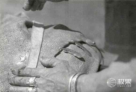 這種手敲出來(lái)的銀飾密度大、硬度大,與模具銀飾品相比,更結(jié)實(shí)不易斷。他很尊重自己的作品,從不用模具量產(chǎn),手工作品僅單只出售給能欣賞自己的人。結(jié)合他在印第安的經(jīng)歷看來(lái),上述酷似某種考驗(yàn)的售賣(mài)方式也就說(shuō)的通了。