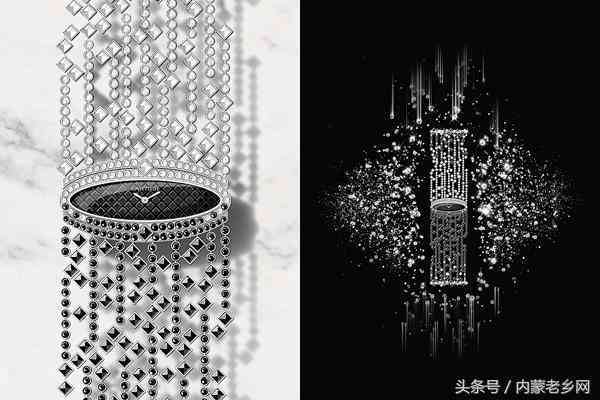 黑色尖晶石與晶瑩鉆石如瀑布般傾瀉而下,華麗璀璨,絕美耀眼。 懸置時,絢爛光線在肌膚上靈動游走。 別出心裁的單色對比,迷你表盤鑲嵌雙排珍貴寶石,黑色與白色完美相融,呈獻美不勝收的視覺效果。