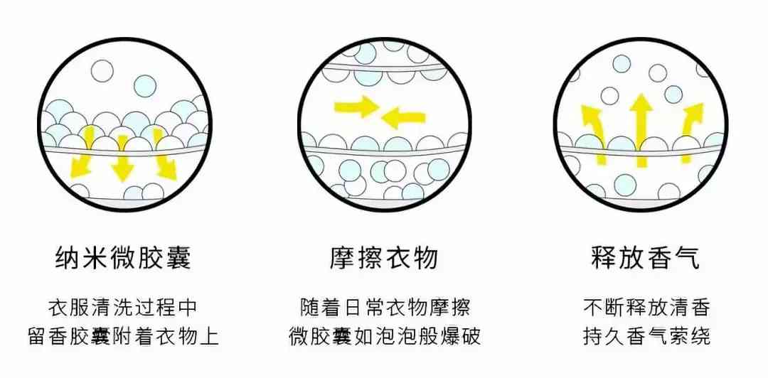 隨著穿衣、走路、活動(dòng)的每一次摩擦,微膠囊就像泡泡一樣被擠壓爆破,香氣被源源不斷地釋放出來。