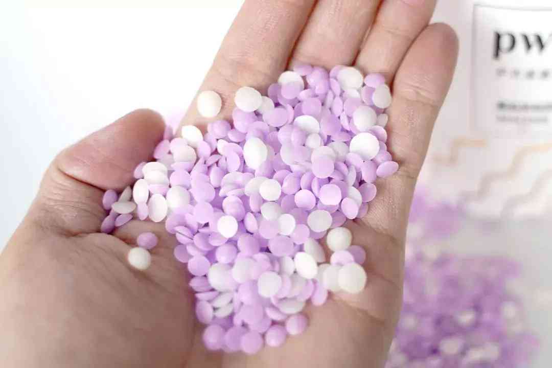它的外觀是雙色混合的濃縮顆粒,半圓形的留香珠像一片片小花瓣。