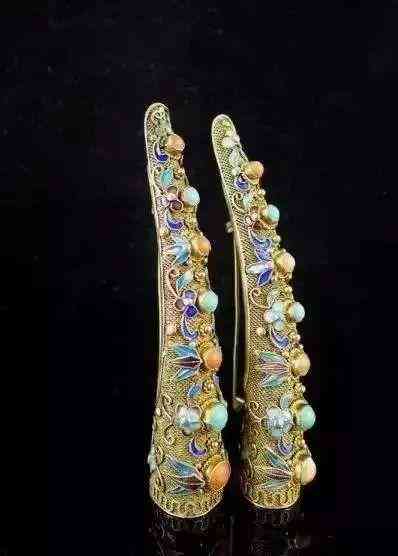 【指甲套】指甲套,護甲套、護指套。早就已出現(xiàn)。這一點被很多人忽視。只是到了清朝。后宮嬪妃用的就非常普遍了,樣式也繁密了許多。