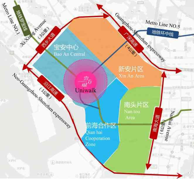 項(xiàng)目地處前海、寶安雙中心,地鐵1號(hào)線、5號(hào)線、11號(hào)線直達(dá),直通25條公交線路樞紐場站,交通優(yōu)勢顯著,潛在消費(fèi)人群除200萬商圈人口外,還包括400萬消費(fèi)力極強(qiáng)的寶安區(qū)常住人口。