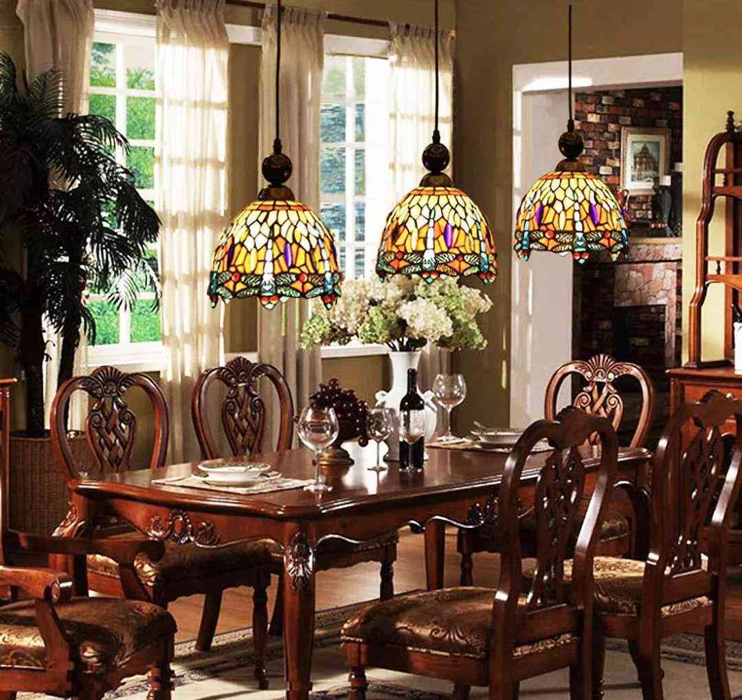 蒂芙尼蜻蜓彩繪玻璃吊燈為餐廳帶來柔和氛圍