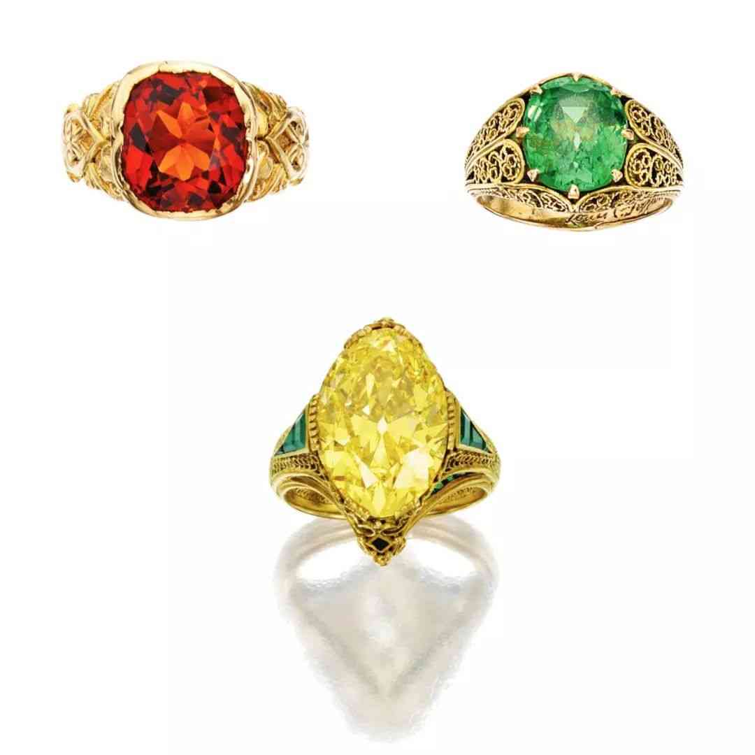 各式寶石與琺瑯相結(jié)合的戒指/路易斯·蒂芙尼