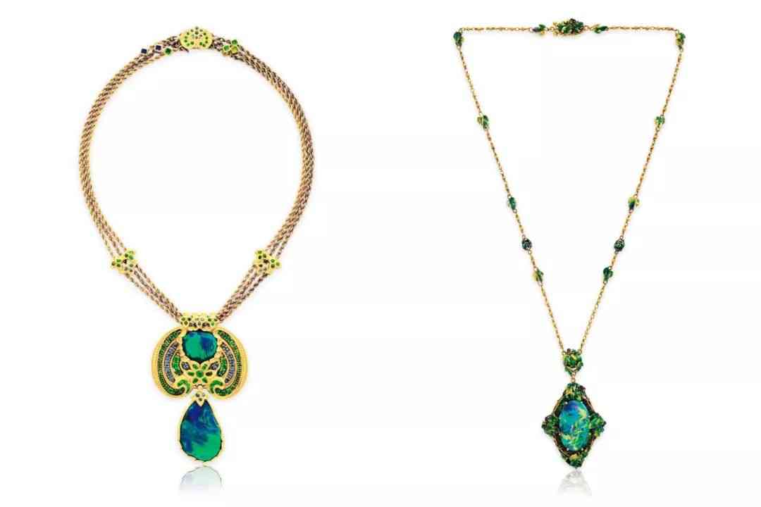 1904年,路易斯安那世博會上,路易斯呈現(xiàn)的27件高定珠寶,驚艷了全場。不同于當(dāng)時美好時代風(fēng)格,大量使用鉑金、鉆石點綴的珠寶,路易斯有一套自己的工藝美學(xué)。