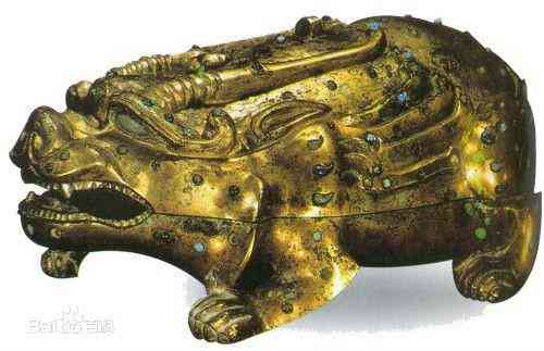 傳說中的漢代貔貅,實(shí)際真正的名稱是東漢鎏金鑲嵌獸型帶硯銅盒
