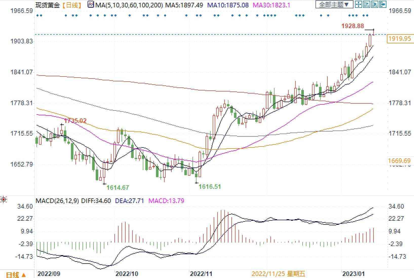 現(xiàn)貨黃金日線圖