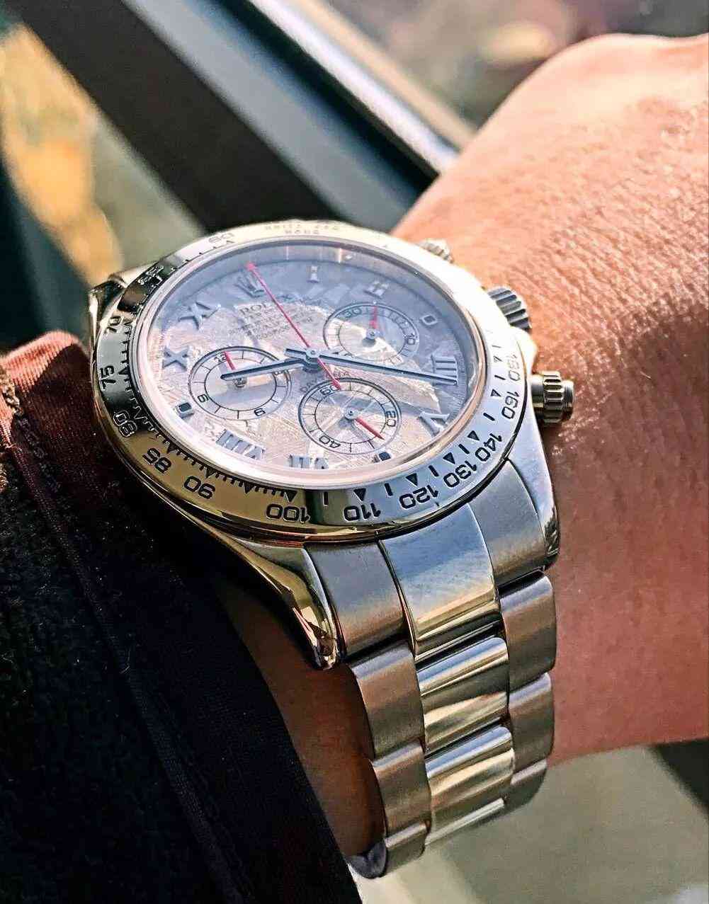 白金款的隕石面,這塊應(yīng)該是2008年的表款,當(dāng)然也是二手市場(chǎng)所得,到手19.8萬(wàn)。個(gè)人覺(jué)得對(duì)陶瓷圈迪通拿有執(zhí)念的人不妨挪一挪眼睛,這比起目前14萬(wàn)多的溢價(jià),顯然劃算得多。