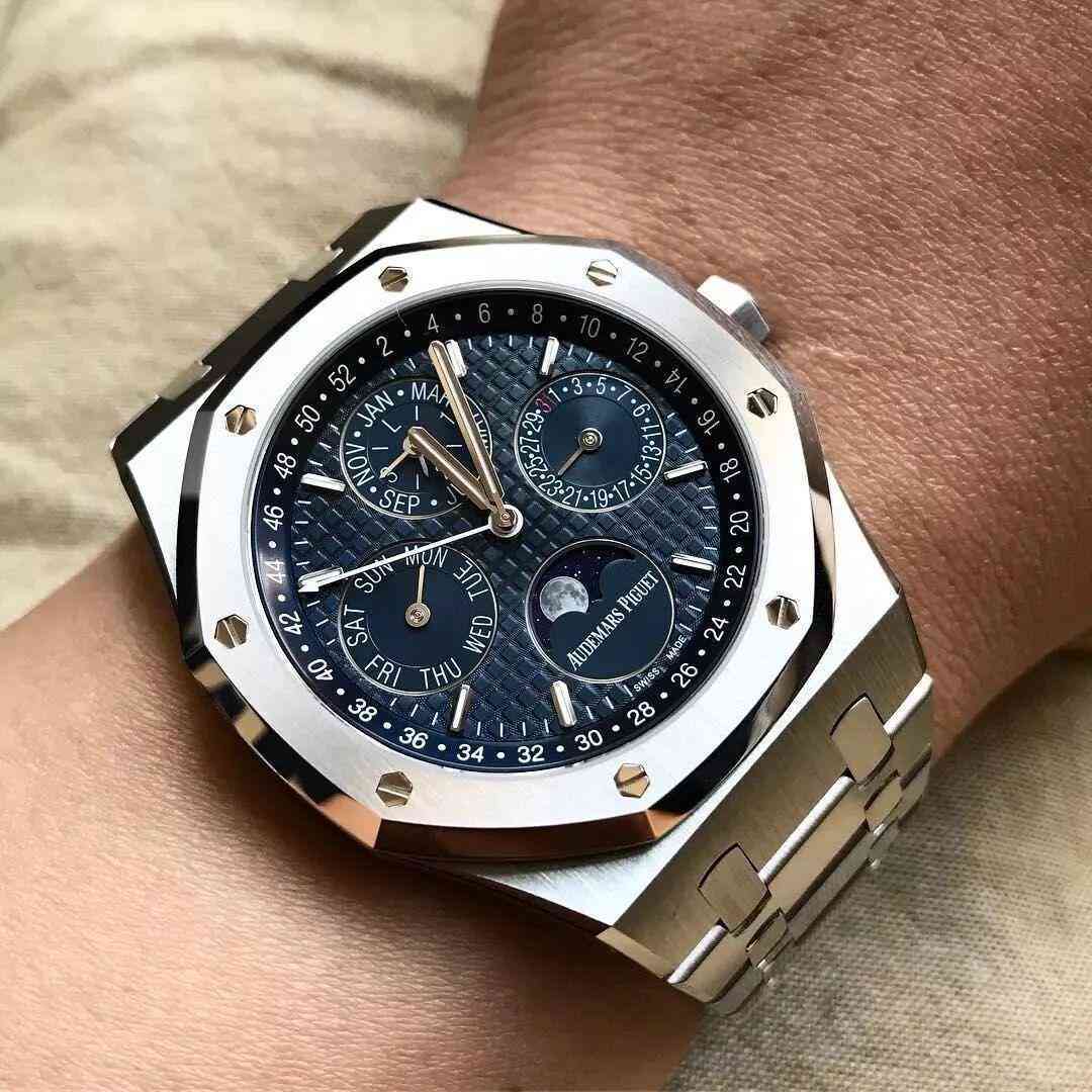 尤其當(dāng)5711已逼近40萬(wàn),兔子認(rèn)為除了不差錢(qián)非買(mǎi)不可的,可考慮AP萬(wàn)年歷,中國(guó)公價(jià)45萬(wàn)左右,有小量折扣。這塊算是品牌里性價(jià)比較高的萬(wàn)年歷了,不過(guò)據(jù)已擁有的朋友告知,怕壞,日常戴得少,家里藏著看。