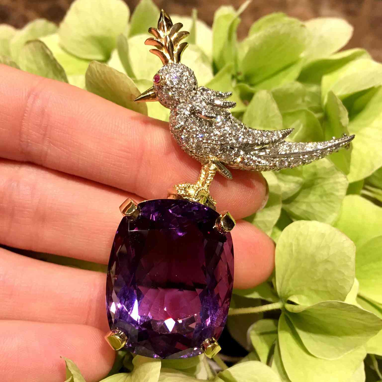 iffany經(jīng)典小鳥胸針,鑲嵌紫水晶