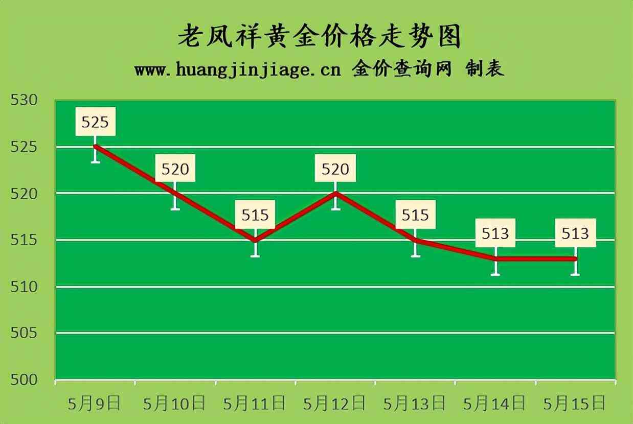 周大福黃金價(jià)格513元/克(),六福黃金價(jià)格513元/克(),周生生黃金價(jià)格513元/克(-),金至尊金價(jià)513元/克(-),謝瑞麟金價(jià)513元/克(-),老鳳祥黃金價(jià)格513元/克(),老廟黃金價(jià)格513元/克(),菜百金價(jià)510元/克(-),周大生金價(jià)513元/克(),中國(guó)黃金價(jià)格510元(-),金大福金價(jià)508元/克(-),潮宏基金價(jià)513元/克(-),周六福黃金價(jià)格514元/克()。