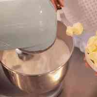4、將打發(fā)的蛋白分多次加入黃油中,每一次都確保攪打均勻