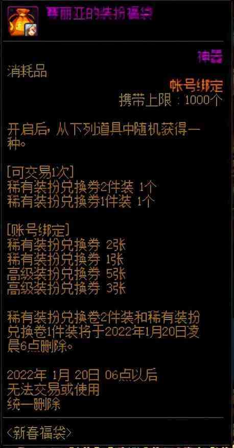 最低可開出3張高級裝扮兌換券,最高可開出稀有裝扮兌換券2張,按照商城最低1980點(diǎn)券一件高級裝扮來計(jì)算,福袋保底5940點(diǎn)券,非常劃算。